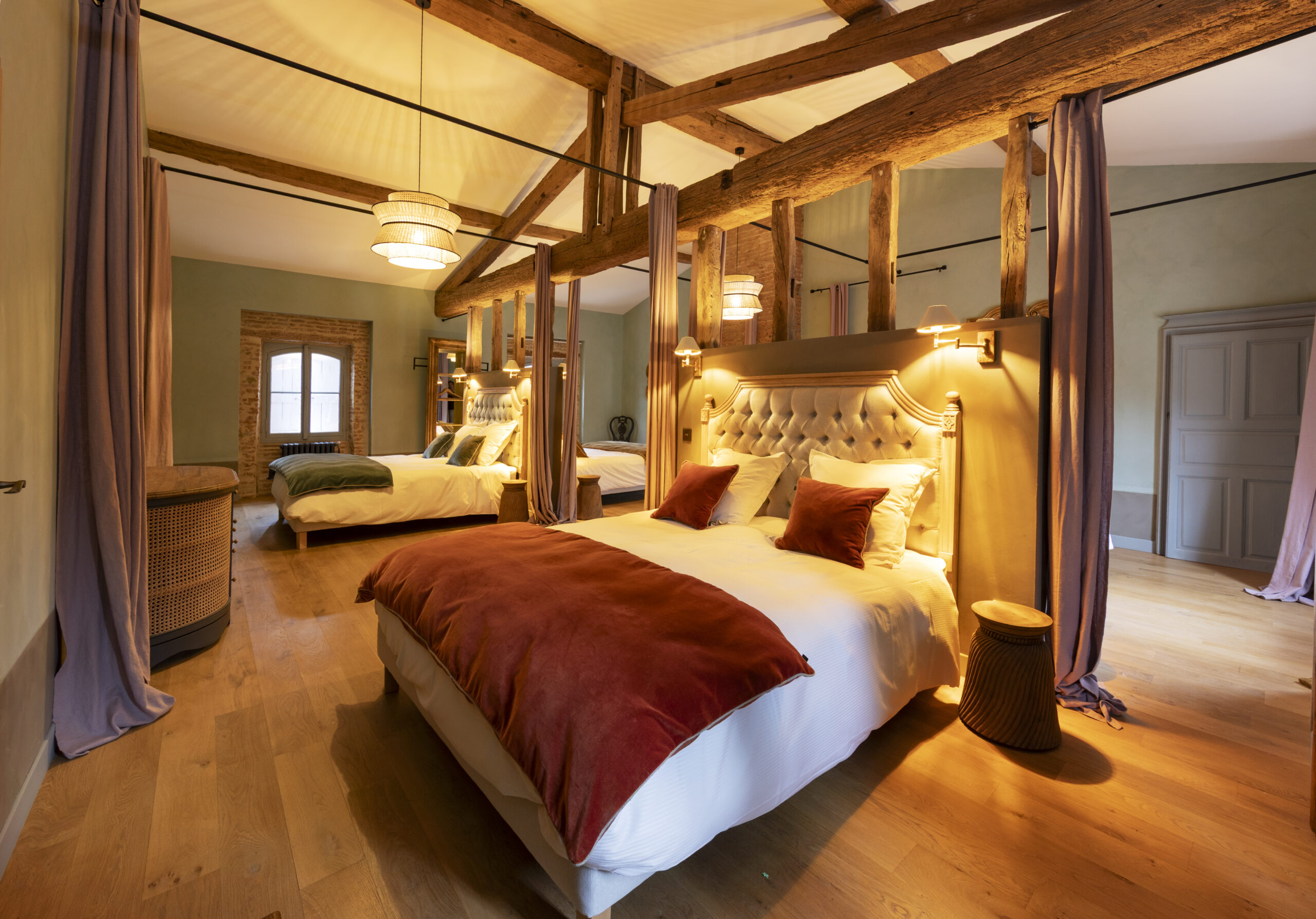 Les lustres, véritables pièces maîtresses, apportent une touche de poésie et de douceur, renforçant l’identité unique du lieu. Un intérieur pensé pour vous faire voyager alliant expérience inoubliable et confort.