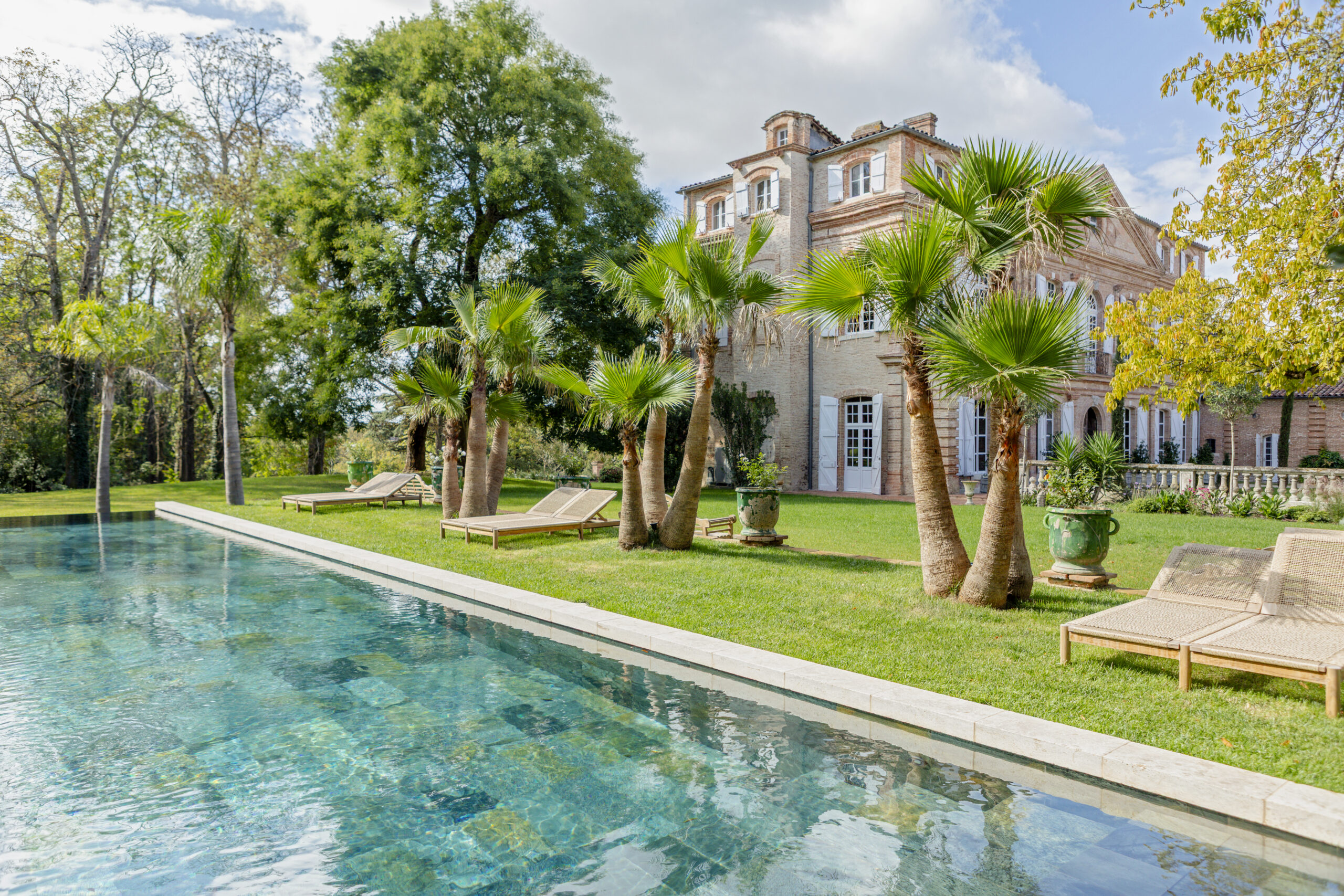 La piscine à débordement du Château du Pujolet, longue de 20 mètres, a été conçue avec des matériaux naturels afin de créer un jeu de reflets, de couleurs et de lumière unique au fil de la journée. Intégrée harmonieusement dans le paysage du domaine et chauffée d’avril à octobre, elle offre un cadre élégant et apaisant pour profiter pleinement du lieu.